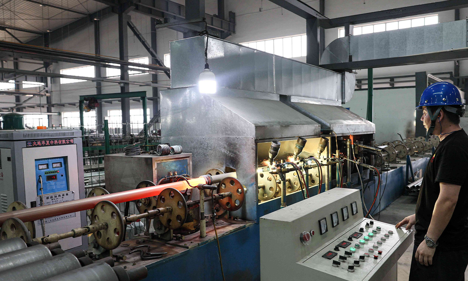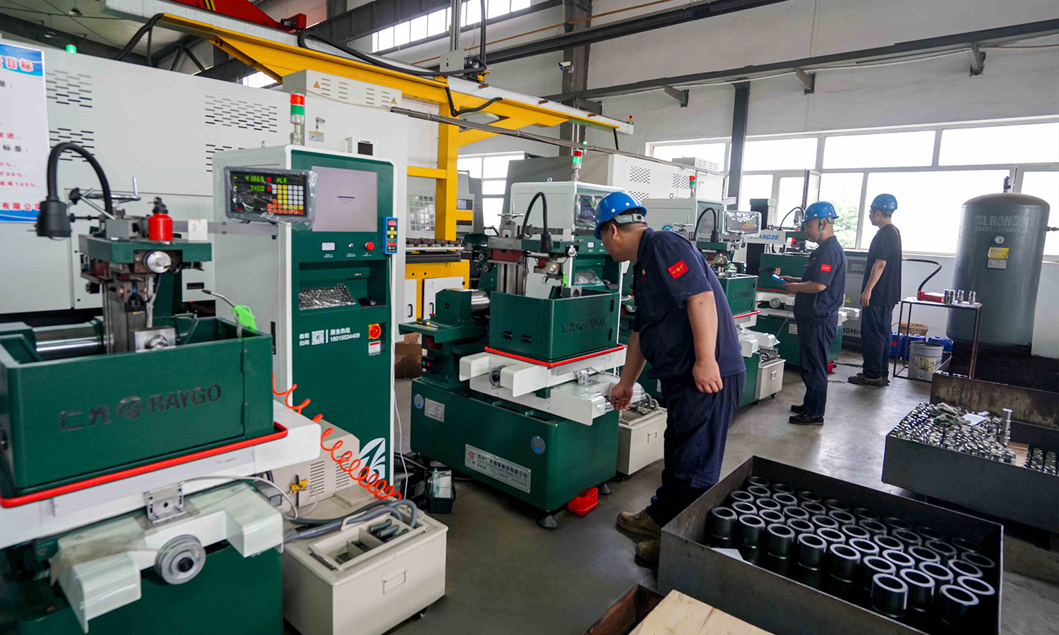 公司一分厂设有一、二两个生产车间,分别负责整筒抽油泵配件、柱塞的生产。一车间配备了高速金属圆切锯、数控钻床(U钻机床)、双主轴数控车床、车铣复合数控机床、立式加工中心、线切割、数控车床等先进机械加工设备,同时配套机械手等辅助设备,能够高效、高质量的生产全系列整筒抽油泵配件,年产能力百万件。二车间拥有自主研发的超长柱塞喷焊机床、不同规格无心磨床、数控磨床等专业设备,年产Φ28~160mm,长度12m以内的各种抽油泵柱塞10万只。